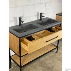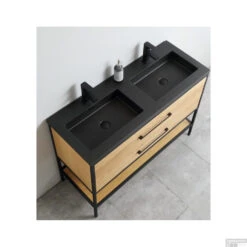 Badkamermeubel Casajoy Miami 120x46x90cm Eiken 4 Lades Met Artificial Stone Wastafel Zwart