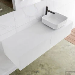 Badkamermeubelset Mondiaz LAGOM 130 Cm Linkse Waskom Solid Zonder Kraangaten Mat Wit (1 Lade)