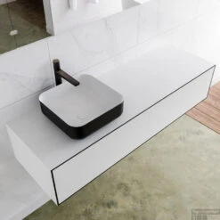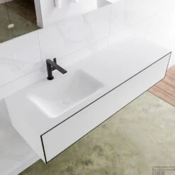 Badkamermeubelset Mondiaz LAGOM 150 Cm Dubbele Waskom Solid Met 2 Kraangaten Mat Wit (1 Lade)