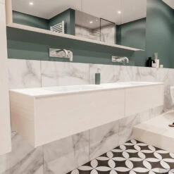 Badkamermeubel BWS Valencia Carrara Mat 100 Cm Solid Surface Wastafel (0 Kraangaten, 2 Lades)