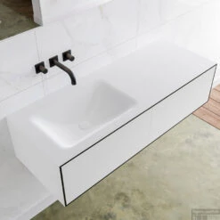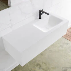 Badkamermeubelset Mondiaz LAGOM 110 Cm Rechtse Waskom Solid Surface Met 1 Kraangat Mat Wit (1 Lade)