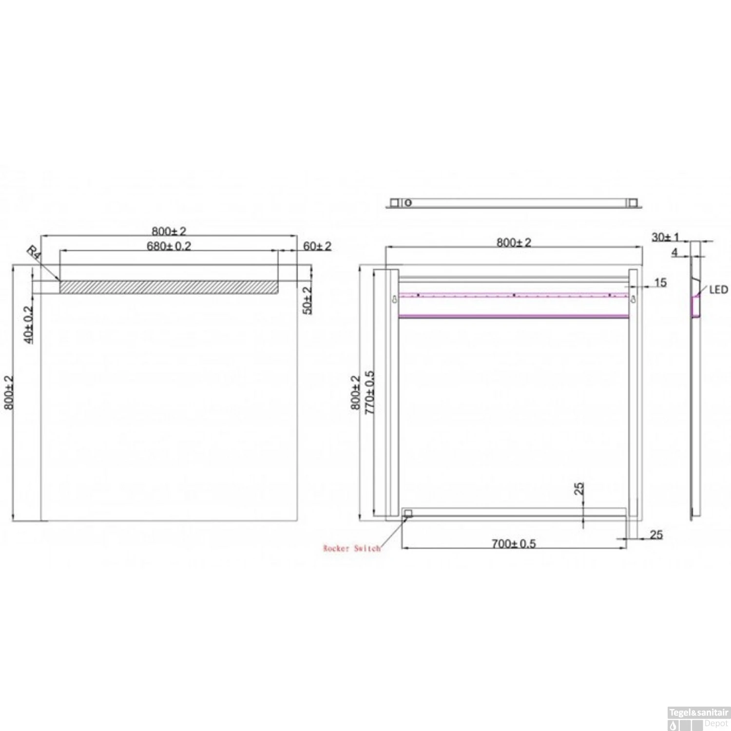 Specificaties BWS LED Spiegel Liga met Lichtschakelaar 80x80x3.1 cm (incl bevestigingsmateriaal)