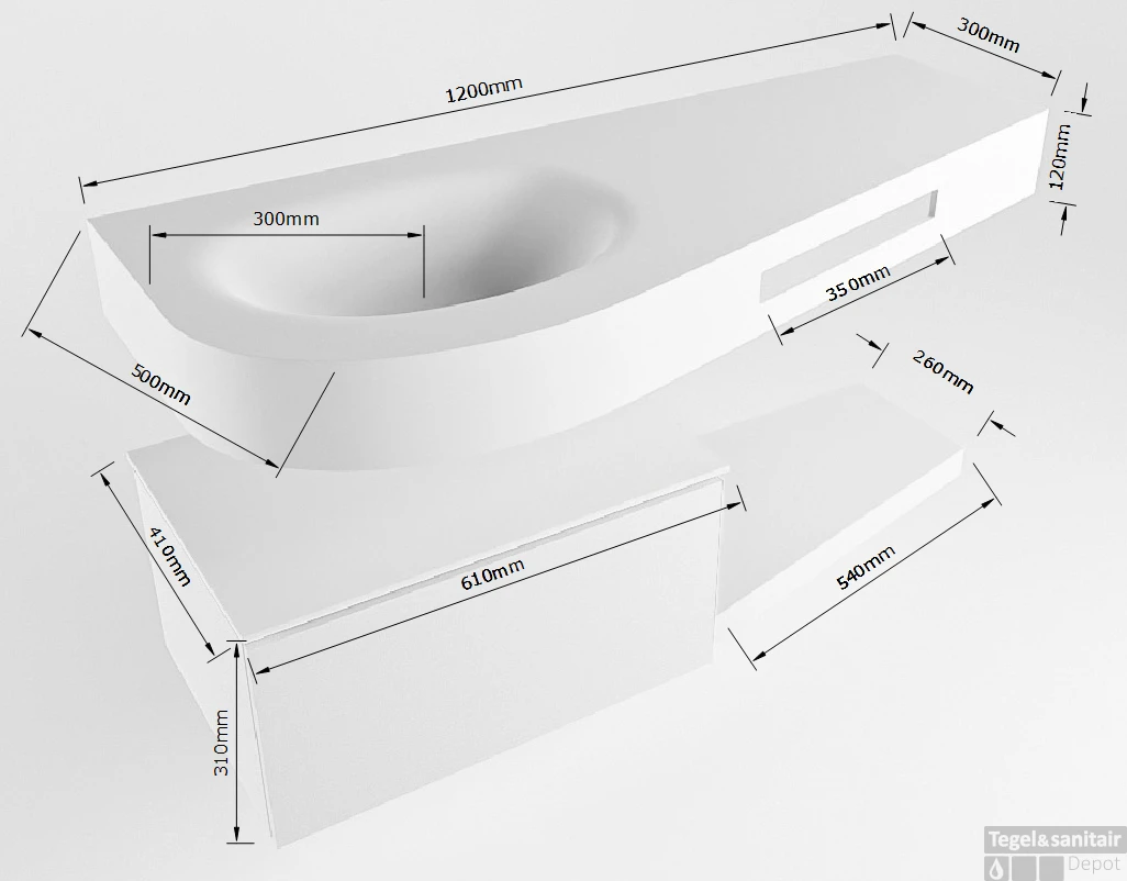 Kleur onderkast: GreeyBreedte : 120cmDiepte: 41cmHoogte: 30cmLade: 1Kleur wastafel: TalcPositie wastafel: linksDiepte wastafel: 50cmKraangat: 0Handdoelhouder: Ja