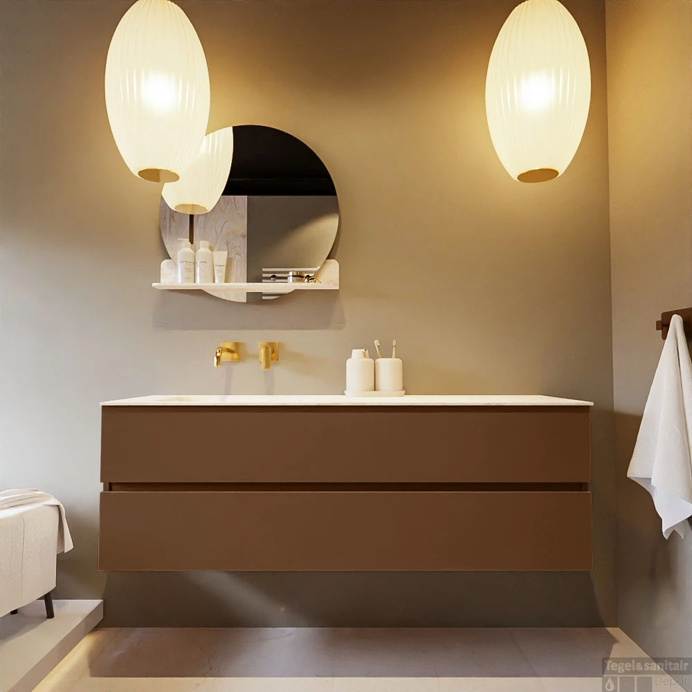 De buitengewone mooie badmeubel set VICA DLUX is een schitterend pronkstuk in uw badkamer. De gemarmerde Solid Surface wastafel van CORIAN heeft een fraaie en tijdloze uitstraling. Door de zachte en natuurlijke vorm van de wastafel, gecombineerd met de tijdloze en prachtige badmeubel onderkast past de VICA-DLUX goed bij de diverse stijlen badkamers. Om uw badkamer compleet te af te stijlen hebben wij ook de nissen en spiegelhouders in dezelfde kleur als de wastafel. Zoals de nissen en spiegel planchetten. De serie VICA DLUX bestaat uit de 2 of 4 laden onderkast VICA gecombineerd met een CORIAN Solid Surface wastafel met marmer structuur. De Solid Surface CORIAN wastafel is in 5 marmer looks verkrijgbaar. Met deze badkamermeubel set heeft u wel die mooie marmeren uitstraling maar tevens ook het gemak en de hygiëne van Solid Surface.