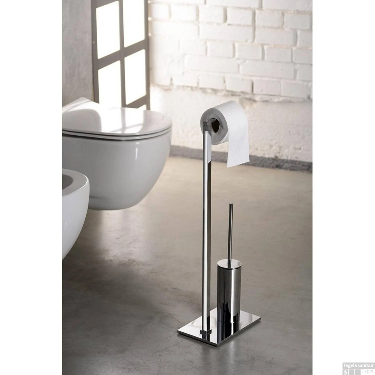 Toiletborstelhouder Sapho Gedy Vrijstaand met Toiletrolhouder Rechthoekig Chroom