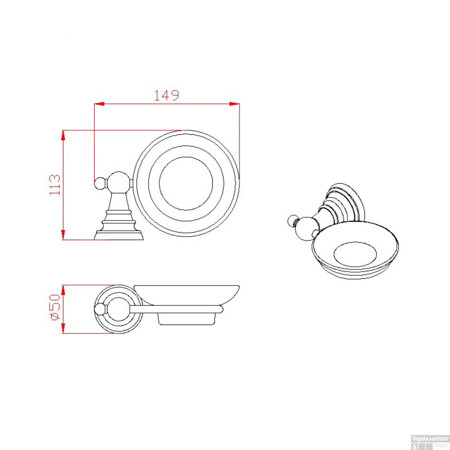De zeephouder heeft een breedte van 14.9 cm, een diepte van 11.3 cm en een hoogte van 5 cm. Deze serie is speciaal ontworpen voor de fans die weg zijn van de klassieke en retro details!